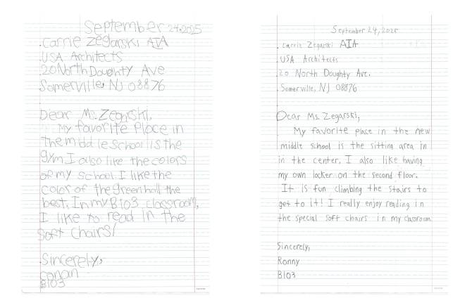 After having a couple weeks to experience their new learning space, some of the students shared their excitement by sending the team a few letters.